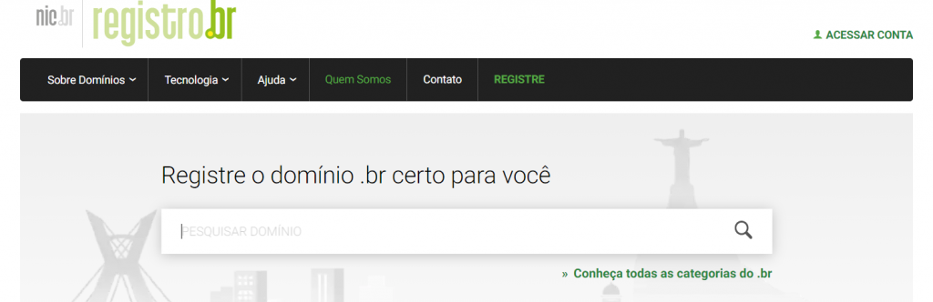 Você pode registrar o seu domínio na internet usando seu CPF (pessoa física) ou seu CNPJ (pessoa jurídica). Tendo esses dados em mãos e o nome do seu domínio em mente, é só digita-lo na caixa de pesquisa do registro.br: